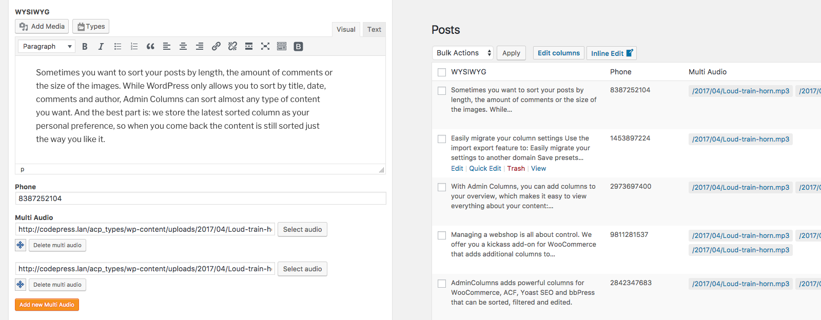 Admin Columns has always allowed you to add an unlimited number of columns to your WordPress overview pages. Unfortunately, when too many columns are added to a page, it becomes difficult to read the content as everything has to be crammed into a small area.
