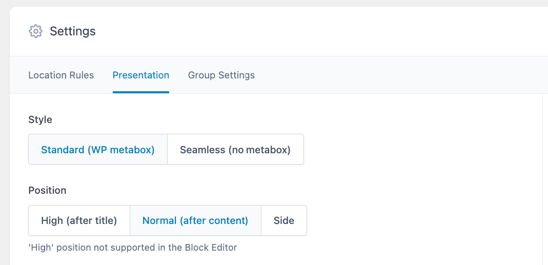 Under group settings, set position to “Normal” and style to “Standard” for clean integration.